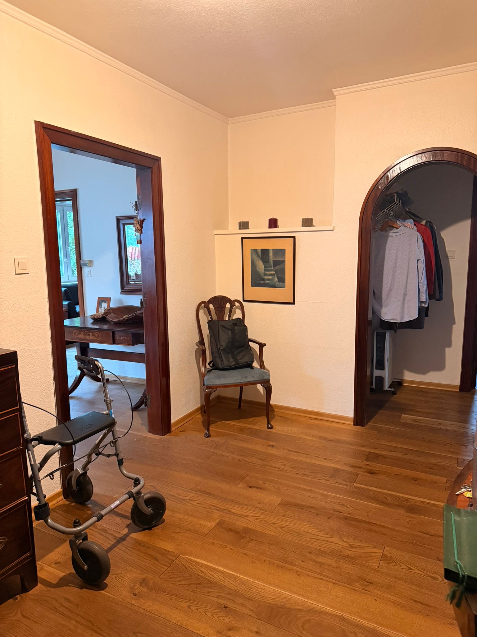 Zahlreiche Fenster sorgen für helle Räume und die offene Bauweise für ein angenehmes, großzügiges Raumgefühl. Die Bodenbeläge sind überwiegend in Fliesen gehalten. Die Bäder sind weiss gefliest und in tadellosem Zustand. Das Bad im Untergeschoss bietet ausreichend Platz für Waschmaschine und Trockner.